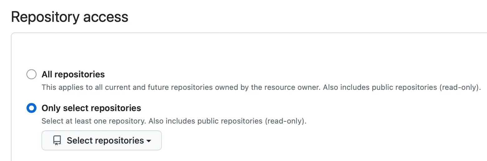 You will need to authenticate your github login and then you should be taken to the Integrations > Applications >Claude page. Here you can make a choice to select all repositories access or only the one you are working on at this moment.