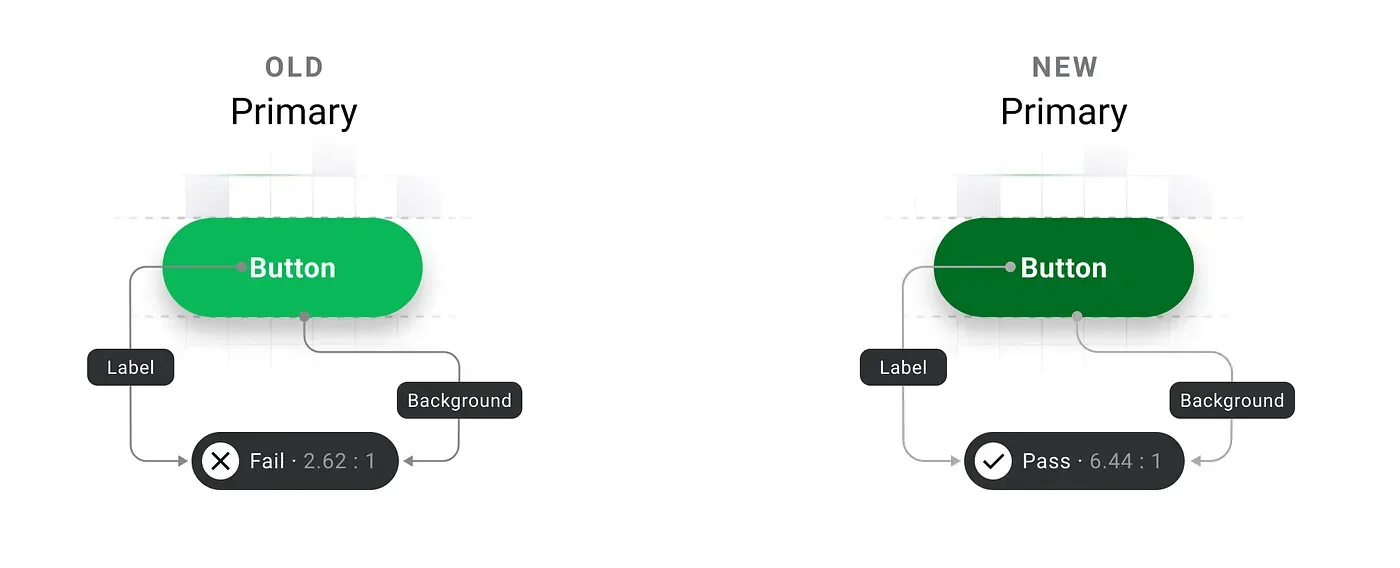 Colour, on the other hand, posed a unique challenge. Our original primary colour (#0AB858), vibrant as it was, didn’t meet WCAG contrast requirements, especially for text on white or green backgrounds in smaller font sizes. We knew this was a dealbreaker for accessibility. Achieving the right contrast was tough — white on green rarely provides the necessary legibility, particularly on low-resolution displays. Finally with the help of Envoy’s post on building an accessible colour scheme, Stark’s handy plugin and Tailwind Color Generator plugin, we found a modified shade of green(#006E25) that worked visually and was AA compliant. But colour wasn’t just about picking a new shade; we also had to write detailed guidelines for how and where it should be used to maintain consistency and accessibility across our products.